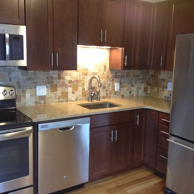 - Eat-In Kitchen with custom cabinets, granite countertop and tile backsplash