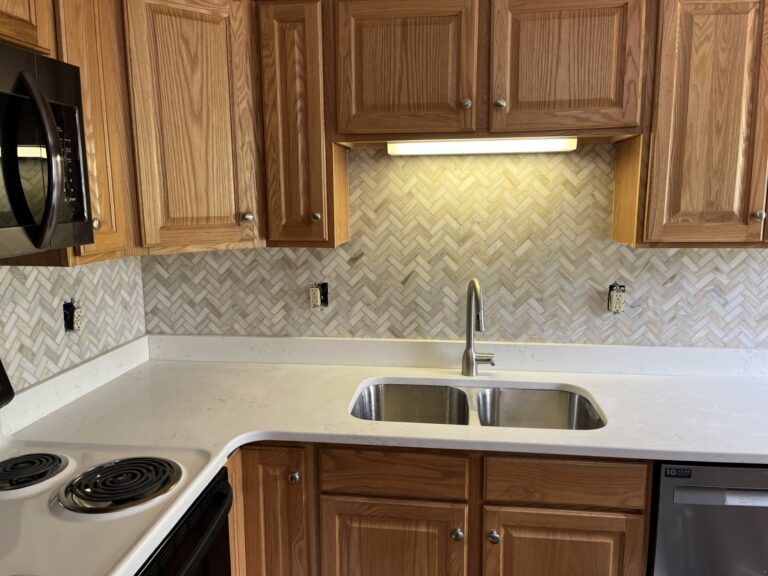 - Eat-in Kitchen with quartz countertops and tile backsplashes as well as full-size refrigerator/freezer, microwave & dishwasher