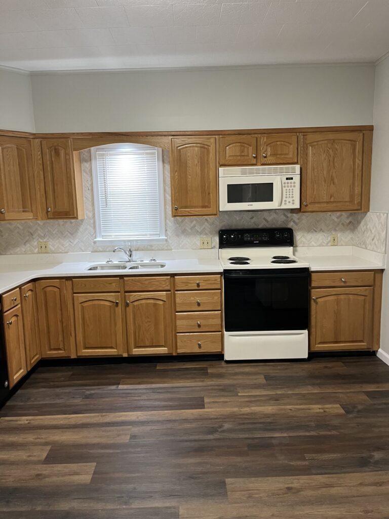 - Eat-in Kitchen with quart countertops and tile backsplashes as well as full-size refrigerator/freezer, microwave & dishwasher